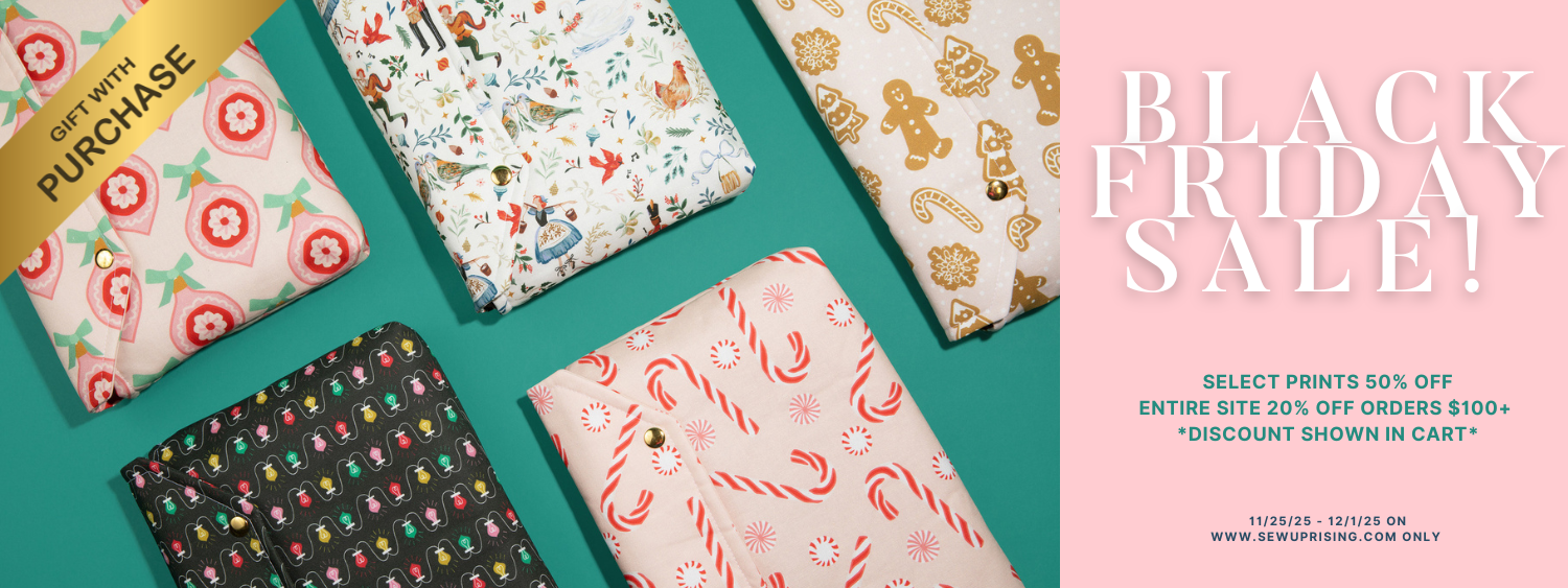 Every Sew Uprising item is made in central Minnesota. Every piece cut, every stitch made, every snap placed, is done by hand in our home-based sewing studio. When you buy from Sew Uprising you are truly shopping small and you can be assured a happy dance is done with every item made!