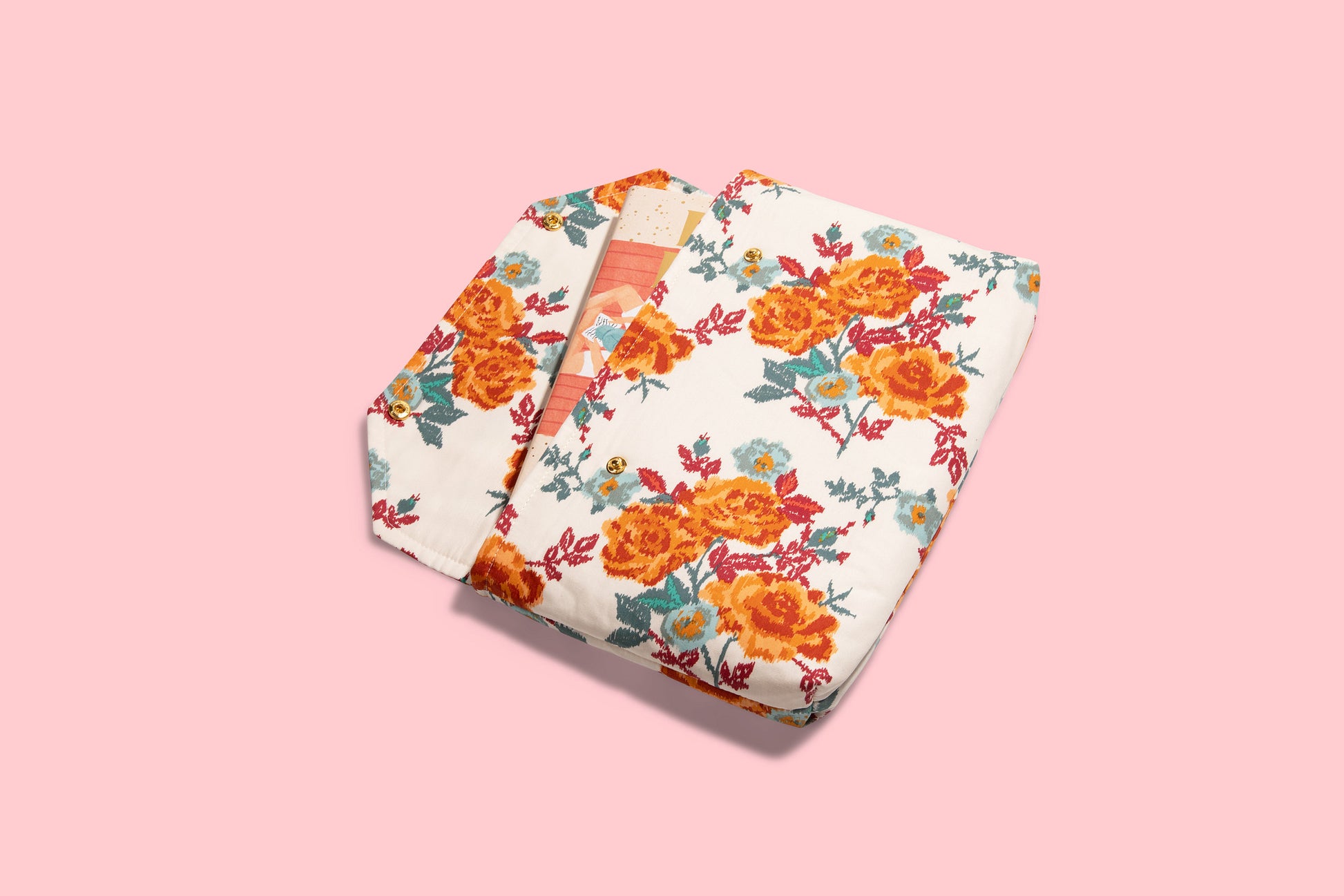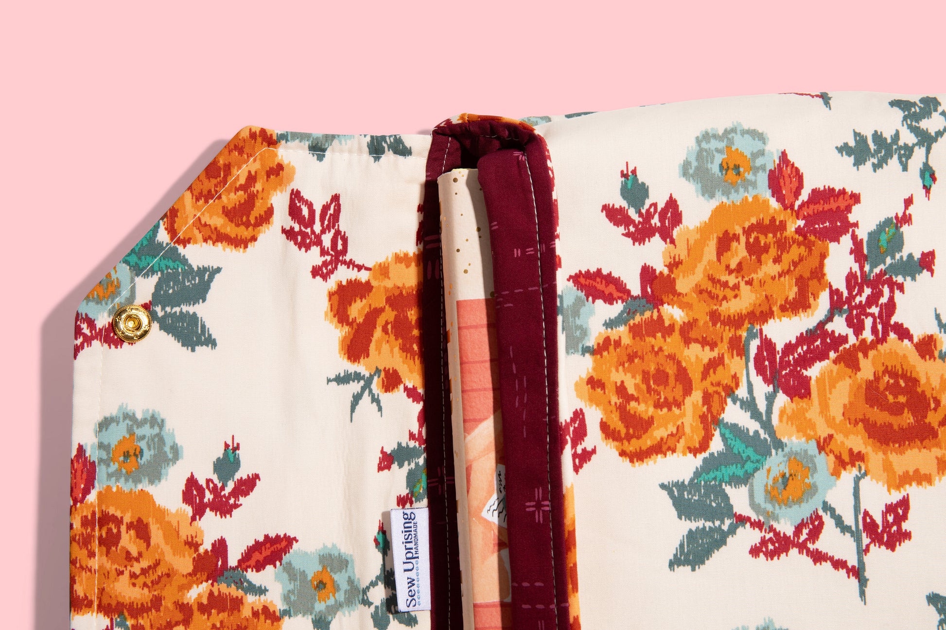 Protect your favorite books with this deluxe envelope style protective book sleeve made from 100% cotton fabric with additional added padding in an eye catching print with fabric from Rifle Paper Company.