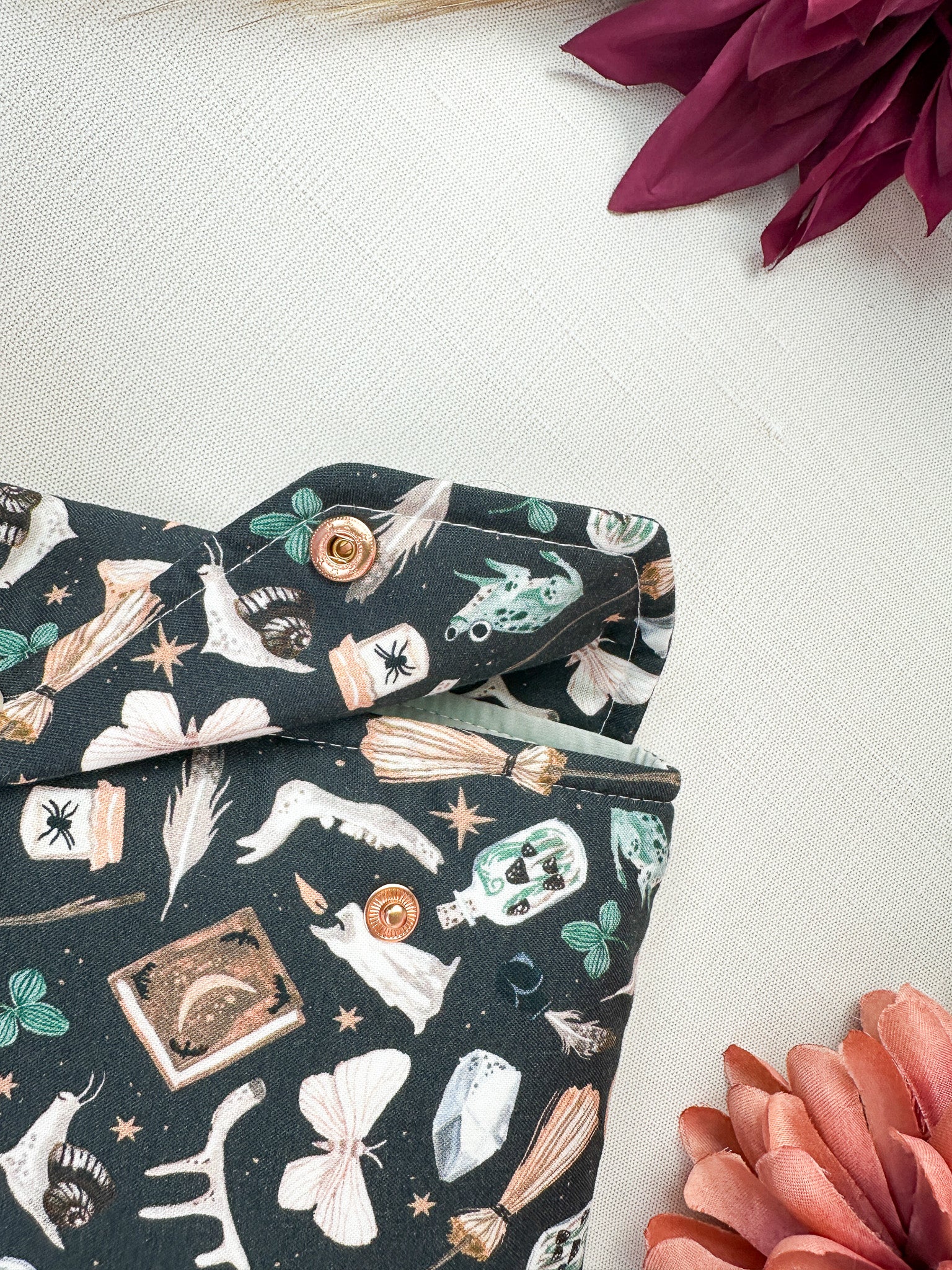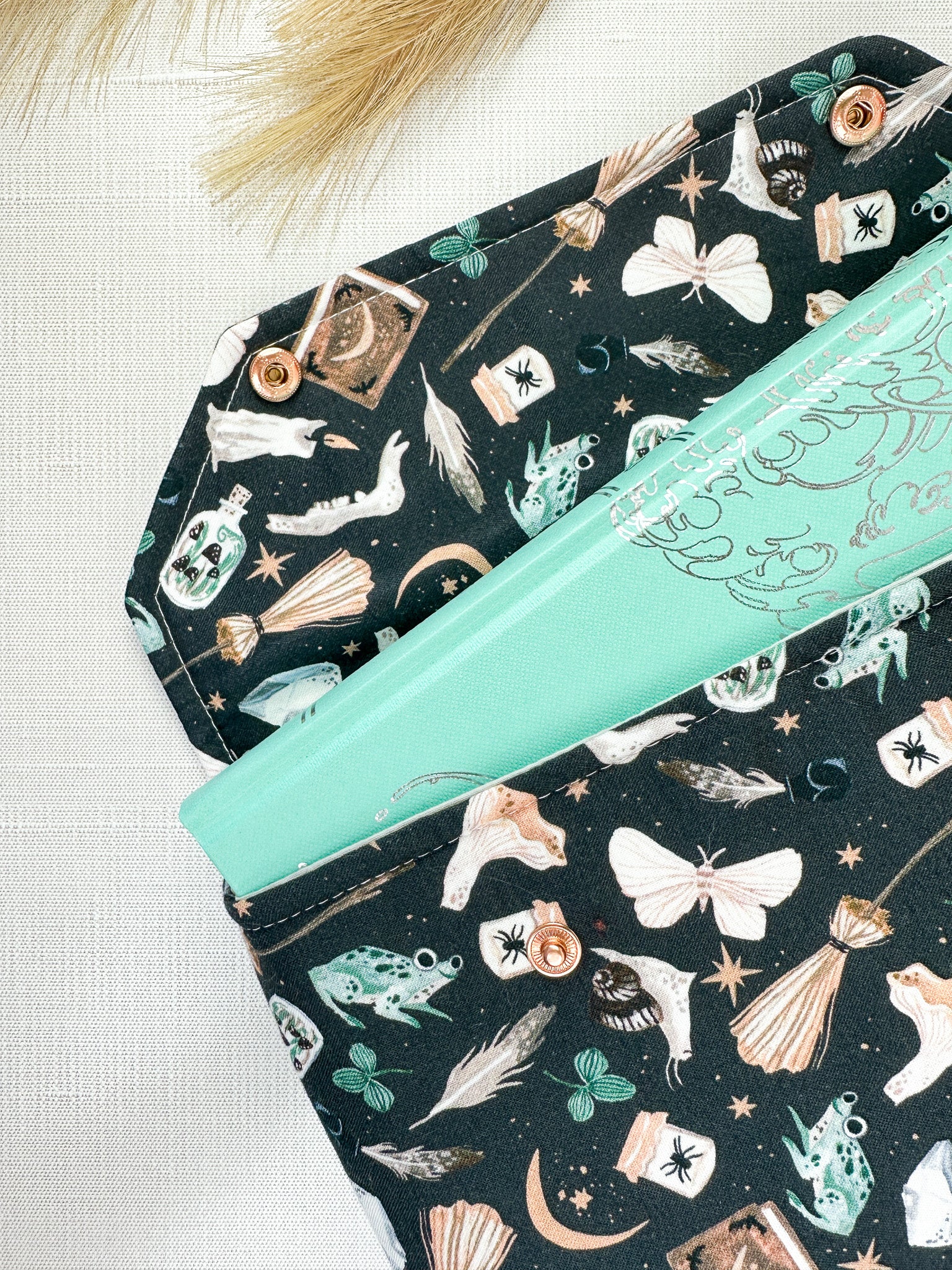 Made from high-quality materials, this sleeve offers full coverage for your books, keeping them safe from scratches, spills, and other hazards with its full closer button flap. The interior of the sleeve is lined with a soft, cotton material to prevent any damage to the book's cover and pages. The exterior features a durable, reinforced fabric that provides an additional layer of protection. The sleeve is also designed with a double secure closure to keep your book in place while on the go!