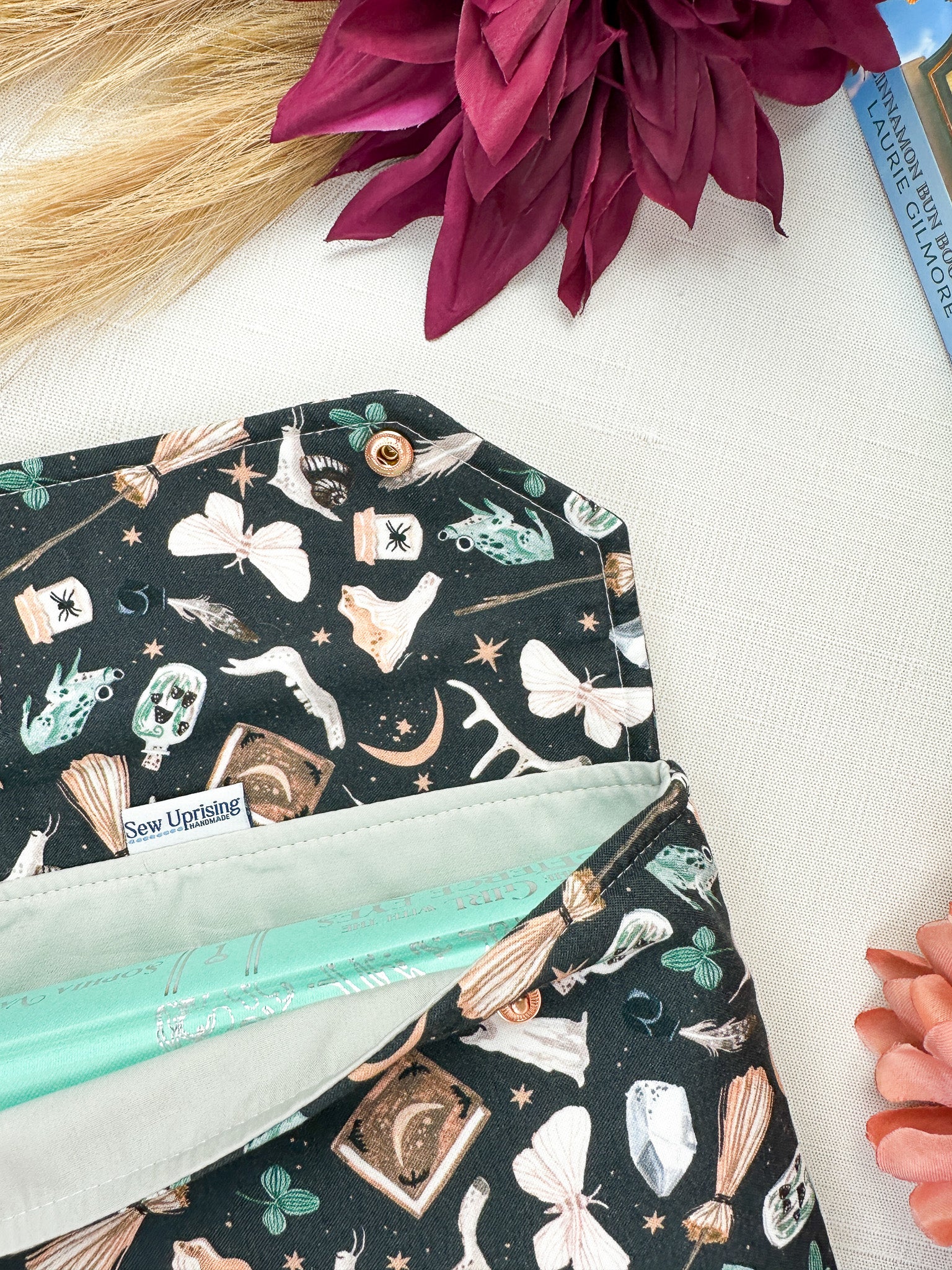 Protect your favorite books with this deluxe envelope style protective book sleeve made from 100% cotton fabric with additional added padding in an eye catching print.
