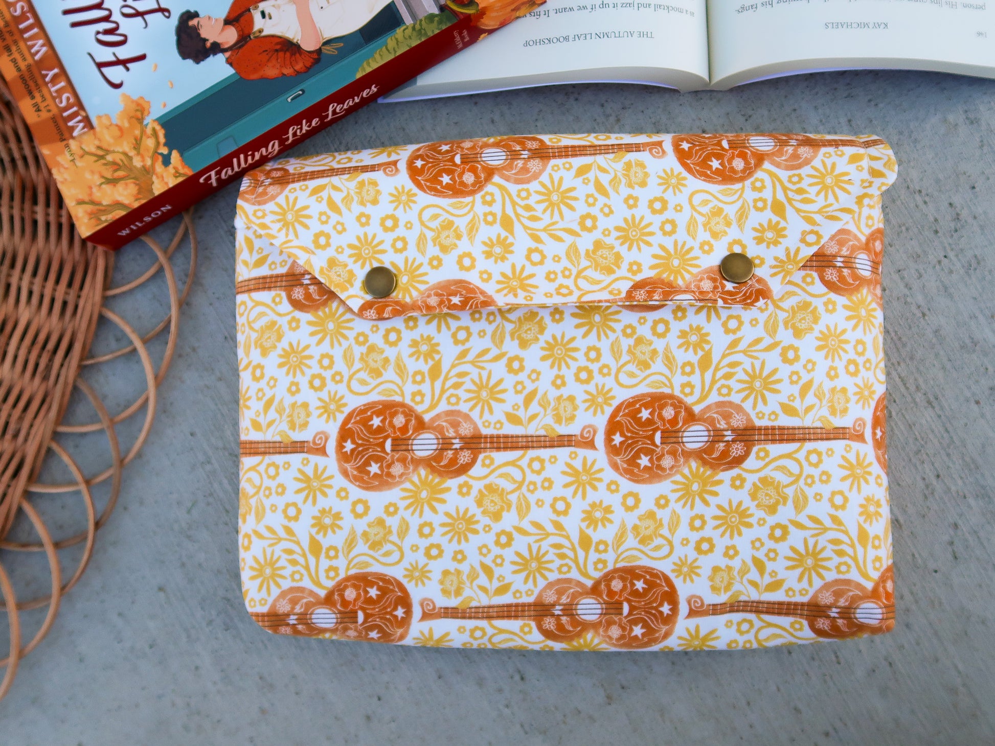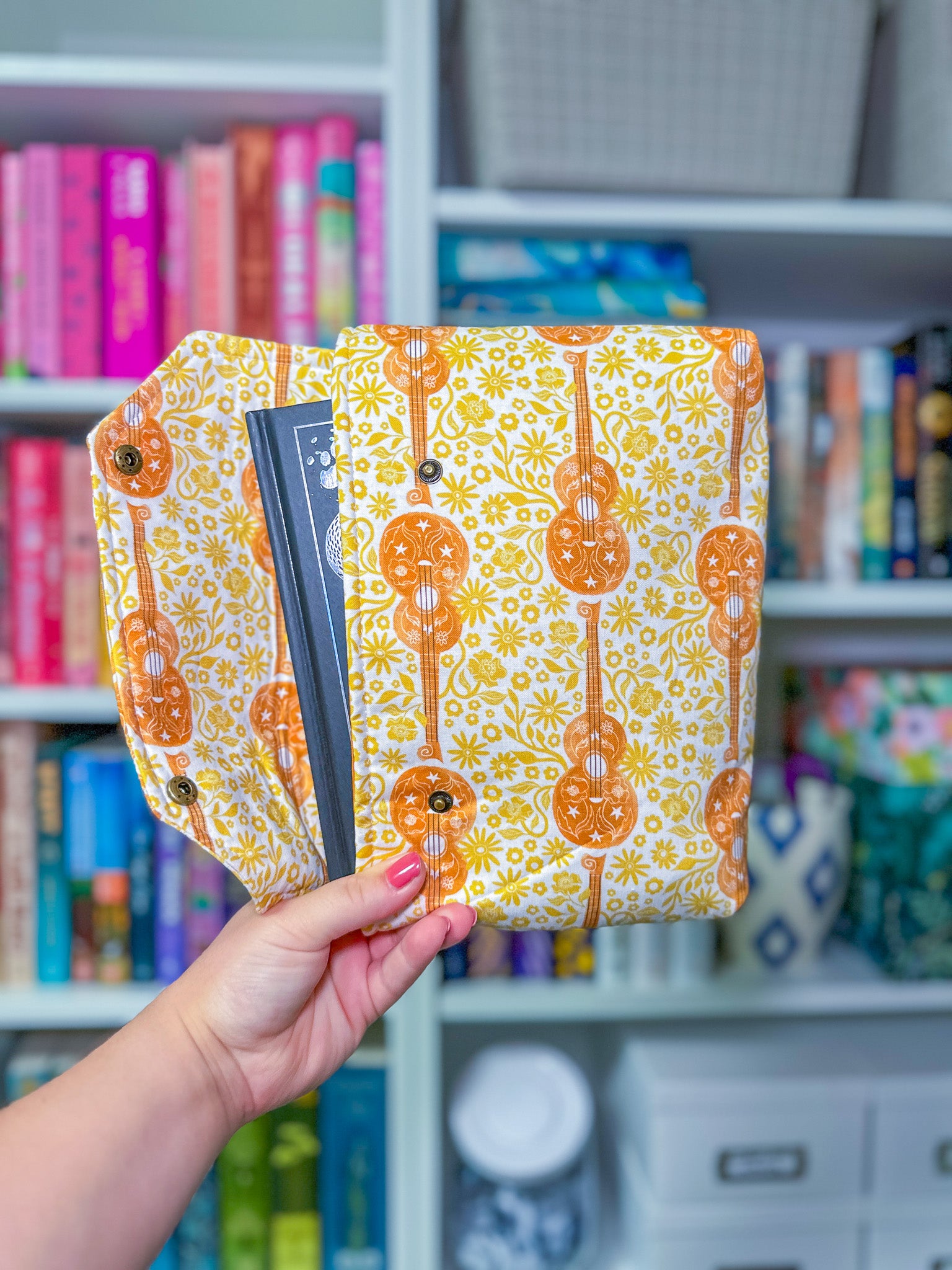 Protect your favorite books with this deluxe envelope style protective book sleeve made from 100% cotton fabric with additional added padding in an eye catching print.
